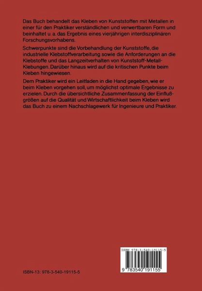 Das Buch behandelt das Kleben von Kunststoffen mit Metallen