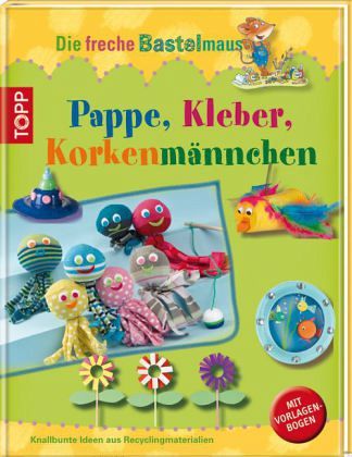 Die freche Bastelmaus. Pappe, Kleber, Korkenmännchen. Knallbunte Ideen aus Recyclingmaterialien. Ideen aus Recyclingmaterialien für kleine Bastler: knallbunte und freche Bastelmodelle für Kinder ab 4 Jahren. Farbige Schrittillustrationen. Niedlicher Maus-Character zu jedem einzelnen Bastelmodell.