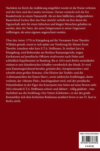 E. T. A. Hoffmann: Klein Zaches genannt Zinnober. Ein Märchen Lesefreundlicher Großdruck in 16-pt-Schrift Nachdem im Reich die Aufklärung eingeführt wurde ist die Poesie verboten und die Feen sind des Landes verwiesen. Darum versteckt sich die Fee Rosabelverde in einem Damenstift. Als sie dem häßlichen, mißgestalteten Bauernkind Zaches über das Haar streicht verleiht sie ihm damit die Eigenschaft, stets für einen hübschen und klugen Menschen gehalten zu werden, dem die Taten, die seine Zeitgenossen in seiner Gegenwart vollbringen, als seine eigenen angerechnet werden. Großformat, 210 x 297 mm Berliner Ausgabe, 2019 Durchgesehener Neusatz mit einer Biographie des Autors bearbeitet und eingerichtet von Theodor Borken Erstdruck: Berlin (Dümmler) 1819. Textgrundlage ist die Ausgabe: E.T.A. Hoffmann: Poetische Werke in sechs Bänden, Band 5, Berlin: Aufbau, 1963. Umschlaggestaltung von Thomas Schultz-Overhage unter Verwendung des Bildes: Jacques Callot, Burlesker Geiger, 1616. Gesetzt aus der Minion Pro, 16 pt. Über den Autor: 1776 in Königsberg auf die Vornamen Ernst Theodor Wilhelm getauft, nennt er sich später aus Verehrung für Mozart Ernst Theodor Amadeus oder kurz E.T.A. Hoffmann. Er studiert Jura in Königsberg, wird Referendar am Berliner Kammergericht, wegen Karikaturen auf preußische Offiziere strafversetzt nach Polen und schließlich Kapellmeister in Bamberg. Bis er 1814 nach Berlin zurückkehrt widmet er sein künstlerisches Schaffen vornehmlich der Musik. Er wird zum Kammergerichtsrat berufen, gründet den »Serapinenorden« und schreibt seine großen Romane, »Die Elixiere des Teufels« und die »Lebensansichten des Katers Murr«, sowie zahlreiche Erzählungen, deren vorletzte, der »Meister Floh«, beschlagnahmt wird, weil der preußische Polizeidirektor in der Figur des Knarrpanti eine Satire auf seine Person sieht. 1822 erkrankt E.T.A. Hoffmann schwer und diktiert - völlig gelähmt - vom Sterbebett aus die Erzählung »Des Vetters Eckfenster«, in der der große Romantiker sich dem kritischen Realismus annähert bevor er am 25. Juni in Berlin stirbt.