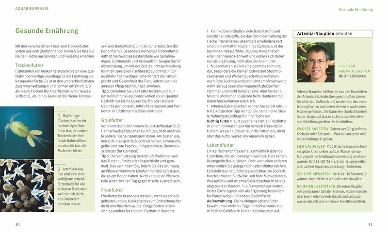 Faszinierende Unterwasserwelten mit farbenprächtigen Fischen erleben! Dieser Traum lässt sich mit einem 60-Liter-Becken auch auf kleinem Raum verwirklichen. Der Aquarien-Experte Ulrich Schliewen erklärt im GU Tierratgeber Kleine Aquarien nicht nur, wie der natürliche Lebensraum der Fische funktioniert, er zeigt auch wie sich diese Naturlandschaft erfolgreich im 60-Liter-Aquarium umsetzen lässt. Dazu gibt es zahlreiche kreative Gestaltungsideen für verschiedene Lebensraumbecken und ausführliche Porträts zu den geeigneten Fischen. Man erhält darüber hinaus wertvolle Tipps zum Kauf, zum richtigen Einsetzen und zur Gesunderhaltung der Fische. Außerdem helfen viele praktische Ratschläge bei der täglichen Pflege und optimalen Instandhaltung des 60-Liter-Beckens. Der Verhaltensdolmetscher erklärt darüber hinaus typische Verhaltensweisen der Aquarienfische. Und mit SOS - was tun? ist Hilfe im Notfall garantiert.