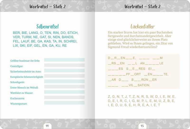 Kategorien: Jede Menge Aufgaben, wie Buchstabenpuzzle, Gitter-, Zahlen- oder Keuzworträtsel in 3 SchwierigkeitsstufenKomplette Lösungen: Dank des übersichtlichen Lösungsteils kannst du schnell nachsehen, falls es zu knifflig wirdTrendig verpackt: Im praktischen Taschenformat für unterwegsPerfekte Geschenkidee: Mache dir selbst oder anderen Rätselfans eine Freude