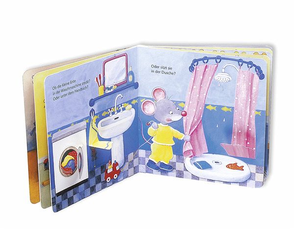 Vor dem Zubettgehen sucht die kleine Maus überall ihre Schmuseente. Seite für Seite kann das Kind beim Suchen helfen und hinter großen, leicht zu öffnenden Klappen entdecken die beiden so allerhand.