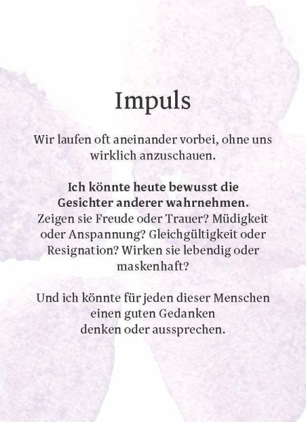 Eine einprägsame Geschichte oder Lebensszene auf der Vorderseite, ein Impuls auf der Rückseite: Mit jeder Karte begleitet Erfolgsautor Elmar Simma durch die Herausforderungen von Alltag und persönlicher Entwicklung. Behutsam öffnet er "kleine Fenster zum Glück", die zu einem ausgeglichenen Leben anregen: ein Lächeln verschenken, das Genießen nicht vergessen, eine kleine Checkliste für das eigene Beziehungsnetz durchgehen ...Biblische Weisheit, japanisches Kintsugi, chassidische Geschichten - der Seelsorger schöpft aus christlichen Quellen mit offenem Blick auf andere Kulturen und Religionen.