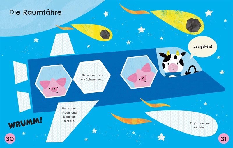 - Basteln ohne Lesekenntnisse dank farbiger Vorlage auf jeder Doppelseite