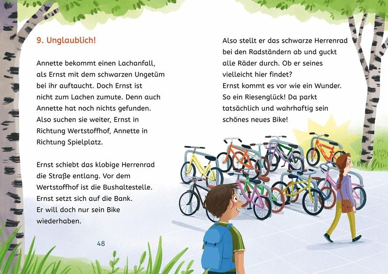 Ernst hat Geburtstag, endlich! Annette freut sich mit ihm, denn sein größter Wunsch ist in Erfüllung gegangen: Er hat ein neues Fahrrad bekommen! Es funkelt und glänzt - und es sollte immer gut abgeschlossen werden, damit es niemand klaut. Doch ein paar Tage später ist das Rad verschwunden, trotz aller Vorsicht. Annette macht sich mit Ernst auf die Suche.
