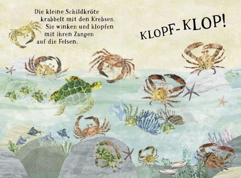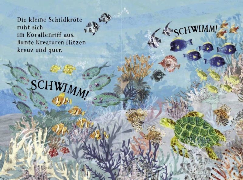 Dieses schön illustrierte Pappbilderbuch nimmt den/die kleine/n Leser/in mit auf eine Reise durch die Meereswelt.Wir schwimmen mit der neugierigen Schildkröte zu den Delfinen, tauchen mit den Haien und ruhen uns bei den Quallen aus.- Zum gemeinsamen Betrachten und Vorlesen zur Schlafenszeit- Kennenlernen der verschiedenen Meerestiere- Bücher, die neugierig machen auf die Natur und die Lebewesen, die darin wohnenFür Kinder ab 2 Jahren