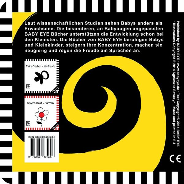 Hinter der Kreation von BABY EYE Bilderbüchern steckt eine medizinische Expertise. Die Forschungen, auf denen BABY EYE basiert, belegen, dass Babys unscharf sehen und deshalb Vorliebe für Schwarz, Weiß und strahlende Primärfarben zeigen.