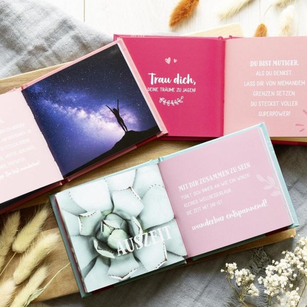 Stimmungsvolle Bilder in leuchtenden Farben und mutmachende Sprüche und Zitate machen das Geschenkbuch zu einem schönen Mitbringsel oder kleinen Geschenk für eine tolle Mama oder Freundin.