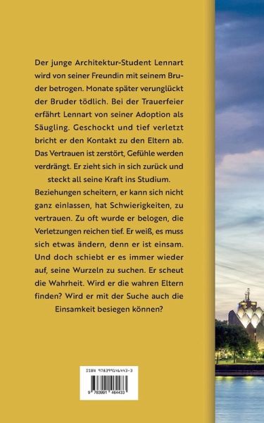 Der junge Architektur-Student Lennart wird von seiner Freundin mit seinem Bruder betrogen. Monate später verunglückt der Bruder tödlich. Bei der Trauerfeier erfährt Lennart von seiner Adoption als Säugling. Geschockt und tief verletzt bricht er den Kontakt zu den Eltern ab. Das Vertrauen ist zerstört, Gefühle werden verdrängt. Er zieht sich in sich zurück und steckt all seine Kraft ins Studium.Beziehungen scheitern, er kann sich nicht ganz einlassen, hat Schwierigkeiten, zu vertrauen. Zu oft wurde er belogen, die Verletzungen reichen tief. Er weiß, es muss sich etwas ändern, denn er ist einsam. Und doch schiebt er es immer wieder auf, seine Wurzeln zu suchen. Er scheut die Wahrheit. Wird er die wahren Eltern finden? Wird er mit der Suche auch die Einsamkeit besiegen können?