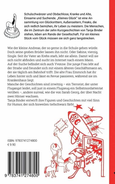 Schulschwänzer und Obdachlose, Kranke und Alte, Einsame und Suchende. "Kleines Glück" ist eine Ansammlung von Glücksrittern, Außenseitern, Freaks, die sich redlich bemühen, ihr Leben zu meistern. Die Menschen, die im Zentrum der elf Kurzgeschichten von Tanja Binder stehen, leben am Rande der Gesellschaft. Für ein kleines Stück vom Glück müssen sie sich lang strecken.