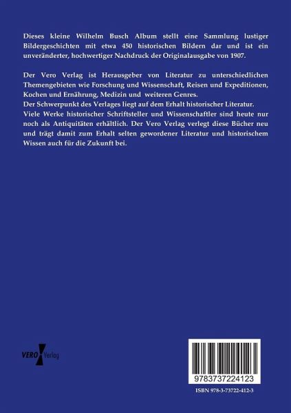 Dieses kleine Wilhelm Busch Album stellt eine Sammlung lustiger Bildergeschichten mit etwa 450 historischen Bildern dar und ist ein unveränderter, hochwertiger Nachdruck der Originalausgabe von 1907.