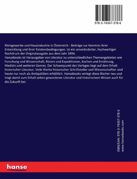 Kleingewerbe und Hausindustrie in Österreich - Beiträge zur Kenntnis ihrer Entwicklung und ihrer Existenzbedingungen. ist ein unveränderter, hochwertiger Nachdruck der Originalausgabe aus dem Jahr 1894.
