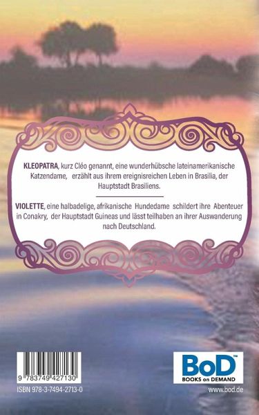 KLEOPATRA, kurz Cléo genannt, eine wunderhübsche lateinamerikanische Katzendame, erzählt aus ihrem ereignisreichen Leben in Brasilia, derHauptstadt Brasiliens. VIOLETTE, eine halbadelige, afrikanische Hundedame schildert ihre Abenteuer in Conakry, der Hauptstadt Guineas und lässt teilhaben an ihrer Auswanderung nach Deutschland.