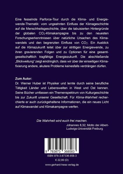 Eine fesselnde Parforce-Tour durch die Klima- und Energiewende-Thematik: vom ungeahnten Einfluss der Klimageschichte auf die Menschheitsgeschichte, über die tabuisierten Hintergründe der globalen CO2-Klimakampagne bis zu den neuesten Forschungserkenntnissen über natürliche Ursachen des Klimawandels und den begrenzten Einfluss von CO2. Ein Ausblick auf die Klimazukunft leitet über zur strittigen Energiewende, zu ihren gravierenden Folgen und zu Optionen für eine gesamtgesellschaftlich tragfähige Energiezukunft. Die abschließende "Blickweitung" zeigt eindringlich, dass wir über der einseitigen Klimafixierung andere, akutere Probleme keinesfalls verdrängen dürfen.