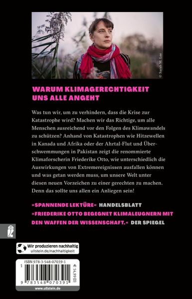 Der Klimawandel trifft uns nicht alle gleich. Friederike Otto liefert anhand von acht extremen Wetterereignissen konkrete Beispiele, was die wirklichen Ursachen sind, wer besonders betroffen ist und vor allem: Was Klimagerechtigkeit tatsächlich bedeutet und was dafür noch getan werden muss. Der Klimawandel zerstört nicht die Menschheit, aber Menschenleben und Lebensgrundlagen. Wir staunen über Rekordtemperaturen, Windgeschwindigkeiten und Regenmengen, aber fragen uns zu wenig, wer ihnen besonders ausgesetzt ist, wer sich nicht erholen kann - und warum. Ungleichheit und Ungerechtigkeit sind der Kern dessen, was den Klimawandel zum Menschheitsproblem machen. Damit müssen Fairness und globale Gerechtigkeit auch im Kern der Lösung stecken. Klimagerechtigkeit geht jeden etwas an.