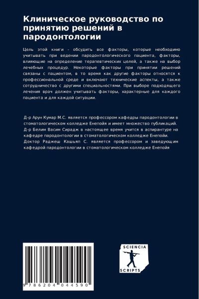 Cel' ätoj knigi - obsudit' wse faktory, kotorye neobhodimo uchitywat' pri wedenii parodontologicheskogo pacienta, faktory, wliqüschie na opredelenie terapewticheskih celej, a takzhe na wybor lechebnyh procedur. Nekotorye faktory pri prinqtii reshenij swqzany s pacientom, w to wremq kak drugie faktory otnosqtsq k professional'noj srede i wklüchaüt tehnicheskie aspekty, a takzhe sotrudnichestwo s drugimi special'nostqmi. Pri wybore podhodqschego lecheniq wrach dolzhen uchitywat' faktory, harakternye dlq kazhdogo pacienta i dlq kazhdoj situacii.