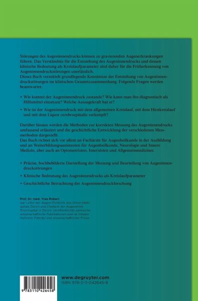 Darüber hinaus werden Methoden zur korrekten Messung des Augeninnendrucks umfassend erläutert und die geschichtliche Entwicklung der verschiedenen Messmethoden dargestellt.