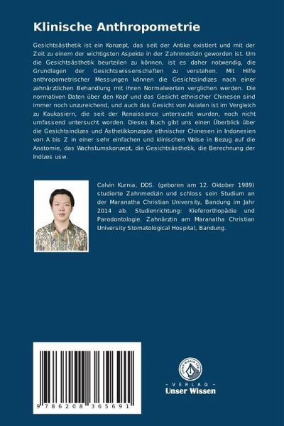 Gesichtsästhetik ist ein Konzept, das seit der Antike existiert und mit der Zeit zu einem der wichtigsten Aspekte in der Zahnmedizin geworden ist. Um die Gesichtsästhetik beurteilen zu können, ist es daher notwendig, die Grundlagen der Gesichtswissenschaften zu verstehen. Mit Hilfe anthropometrischer Messungen können die Gesichtsindizes nach einer zahnärztlichen Behandlung mit ihren Normalwerten verglichen werden. Die normativen Daten über den Kopf und das Gesicht ethnischer Chinesen sind immer noch unzureichend, und auch das Gesicht von Asiaten ist im Vergleich zu Kaukasiern, die seit der Renaissance untersucht wurden, noch nicht umfassend untersucht worden. Dieses Buch gibt uns einen Überblick über die Gesichtsindizes und Ästhetikkonzepte ethnischer Chinesen in Indonesien von A bis Z in einer sehr einfachen und klinischen Weise in Bezug auf die Anatomie, das Wachstumskonzept, die Gesichtsästhetik, die Berechnung der Indizes usw.