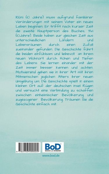 Klöni (10 Jahre) muss aufgrund familiärer Veränderungen mit seinem Vater ein neues Leben beginnen. Er trifft nach kurzer Zeit die zweite Hauptperson des Buches, Ylvi (10Jahre). Beide haben zur gleichen Zeit aus unterschiedlichen Ländern und Lebensräumen durch einen Zufall zueinander gefunden. Die Geschichte führt die beiden einfühlsam und liebevoll an ihrem neuen Wohnort durch Höhen und Tiefen des Lebens. Sie lernen einander mit der Zeit immer besser kennen und achten. Motivierend gehen sie in ihrer Art mit ihren Mitmenschen jeglichen Alters ihrer neuen Umgebung um. Die Geschichte spielt in einem kleinen Ort auf der deutschen Insel Rügen und versucht eine Verbindung zu schaffen zwischen einheimischer Bevölkerung und zugezogener Bevölkerung. Träumen Sie die Geschichte einfach mit.