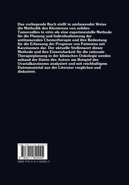 Das Buch stellt in umfassender Weise die Methodik des Klonierens von soliden Tumorzellen in vitro als eine experimentelle Methode für die Planung und Individualisierung der antitumoralen Chemotherapie und ihre Bedeutung für die Erfassung der Prognose von Patienten mit Karzinomen dar. Der aktuelle Stellenwert dieser Methode und ihre Einsetzbarkeit für die rationale Therapieplanung in der klinischen Onkologie werden anhand der Daten des Autors am Beispiel des Ovarialkarzinoms analysiert und mit reichhaltigem Datenmaterial aus der Literatur verglichen und diskutiert. Das Buch präsentiert eine Fülle von neuen wissenschaftlichen Daten, wie sie z.T. international noch nicht publiziert wurden. Es konnte erstmals gezeigt werden, daß: 1. das Wachstum von Tumorzellen in vitro vom relativen Tumorzellgehalt signifikant abhängt; 2. das In-Vitro-System per se keine Selektion einer bestimmten prognostischen Subtype an Tumoren ausübt, so daß die Testergebnisse für alle getestenen Materialien repräsentativ sind; 3. die Vorbehandlung sich nur dann auf die Chemosensitivität gegenüber Folgetherapien auswirkt, wenn diese Therapien identisch sind; 4. die generelle Chemosensitivität in vitro mit der Chemosensitivität in vivo übereinstimmt; 5. das Wachstum in vitro einen selbständigen prognostischen Parameter darstellt. Insbesondere wird der Wert des Testsystemes für die Arzneimittelforschung, für die Erstellung neuer Therapiekonzepte, für die Behandlung von Tumorpatienten in Phase-I-II-Studien sowie die Prognoseerstellung positiv kommentiert.