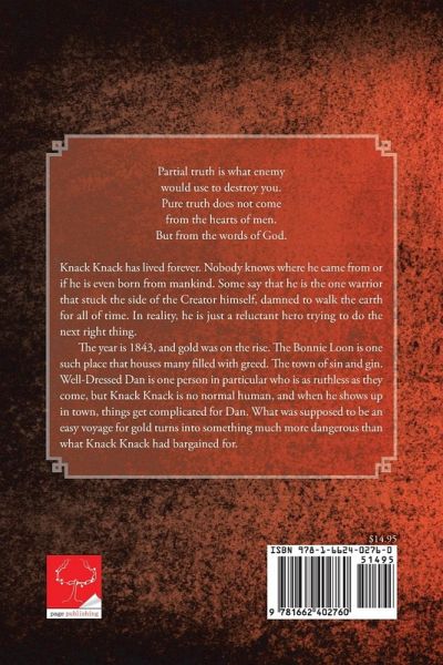 Partial truth is what enemy would use to destroy you. Pure truth does not come from the hearts of men. But from the words of God. Knack Knack has lived forever. Nobody knows where he came from or if he is even born from mankind. Some say that he is the one warrior that stuck the side of the Creator himself, damned to walk the earth for all of time. In reality, he is just a reluctant hero trying to do the next right thing. The year is 1843, and gold was on the rise. The Bonnie Loon is one such place that houses many filled with greed. The town of sin and gin. Well-Dressed Dan is one person in particular who is as ruthless as they come, but Knack Knack is no normal human, and when he shows up in town, things get complicated for Dan. What was supposed to be an easy voyage for gold turns into something much more dangerous than what Knack Knack had bargained for.