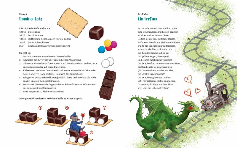 Ein kunterbunt illustriertes Buch voll rollender Räder und ratternder Schienen, mit Texten von Paul Maar, Christine Nöstlinger, James Krüss, Rolf Zuckowski u.v.m.