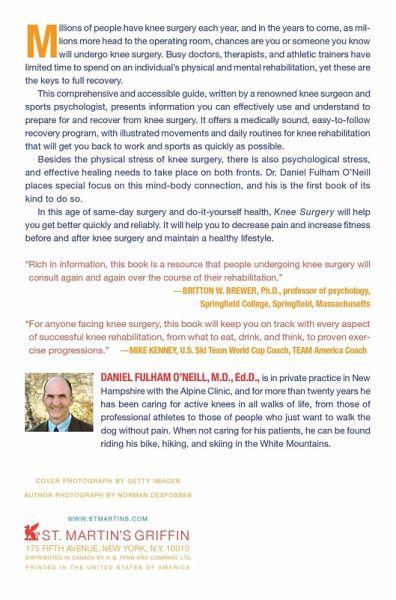 In this age of same-day surgery and do-it-yourself health, Knee Surgery presents an easy-to-do, well-illustrated program of movement for knee rehabilitation - with a special focus on the mind/body connection - and describes the physical and mental rehabilitation process in complete detail, providing all the guidance you need to decrease pain and increase fitness after knee surgery. Millions of people have knee surgery each year, and in the years to come millions more will head to the O.R. Chances are, you or someone you know has had or will undergo knee surgery. Busy doctors, therapists, and athletic trainers have limited time to spend on quality physical and mental rehabilitation education, yet this is the key to full recovery. Written by renowned knee surgeon and Sport Psychologist Daniel F. O'Neill, M.D., Ed.D., this comprehensive and accessible guide presents what you'll want and need the most after knee surgery: a scientifically-based recovery program you can understand that will get you back to work and sports as quickly as possible.