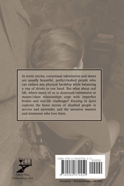 In erotic stories, consensual submissives and slaves are usually beautiful, perfect-bodied people who can endure any physical hardship while balancing a tray of drinks in one hand. But what about real life, where many of us in dominant/submissive or master/slave relationships cope with imperfect bodies and real-life challenges? Kneeling In Spirit explores the brave stories of disabled people in service and surrender, and the inventive masters and mistresses who love them.
