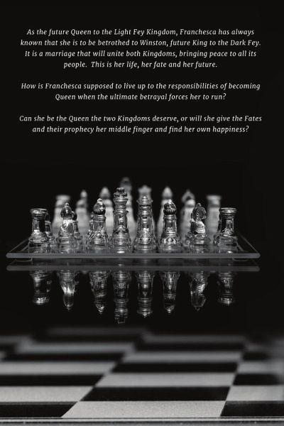 As the future Queen to the Light Fey Kingdom, Franchesca has been betrothed to the future King of the Dark Fey her entire life. For a marriage of their Kingdoms is required to unite the Fey Realm, bringing peace to all its people. This is her life. Her fate. Her future. Yet, how can she live up to her royal responsibilities when the ultimate betrayal forces her to flee? Can she be the Queen the two kingdoms need? Or will she give the Fates - and their prophecy - the middle finger to find her own happiness? This is a Reverse Harem Series