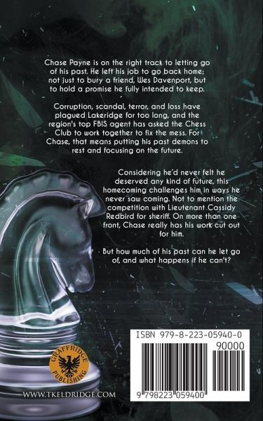 Chase Payne is on the right track to letting go of his past. He left his job to go back home; not just to bury a friend, Wes Davenport, but to hold a promise he fully intended to keep. Corruption, scandal, terror, and loss have plagued Lakeridge for too long, and the region's top FBIS agent has asked the Chess Club to work together to fix the mess. For Chase, that means putting his past demons to rest and focusing on the future. Considering he'd never felt he deserved any kind of future, this homecoming challenges him in ways he never saw coming. Not to mention the competition with Lieutenant Cassidy Redbird for sheriff. On more than one front, Chase really has his work cut out for him. But how much of his past can he let go of, and what happens if he can't?