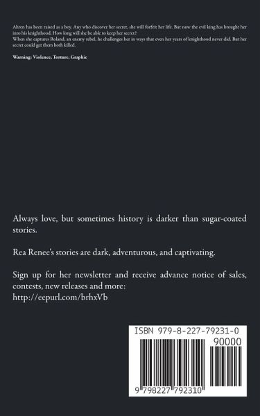 A Knight's Deception Ahren, a skilled knight, hides a dangerous secret: she is a woman masquerading as a man. If her true identity is revealed,her life will be forfeit. When the cruel King summons her to his knighthood, Ahren must navigate a treacherous court while keeping her past a secret. But her troubles escalate when she captures Roland, a rebellious enemy. Their unexpected encounter ignites a passion that threatens to consume them both. As their bond deepens, Ahren faces the ultimate choice: reveal her secret and risk everything, or keep it hidden and betray the man she loves. Warning: Violence, Torture, Graphic
