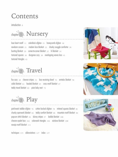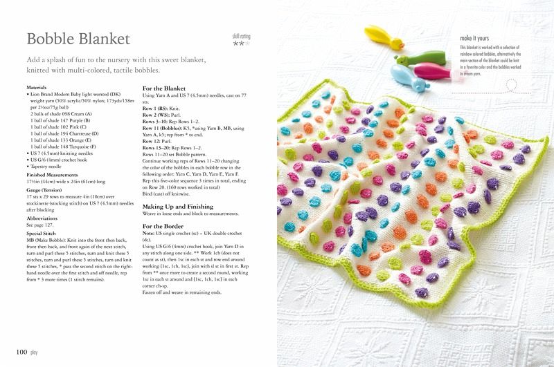 Knit 35 GORGEOUS and COLORFUL baby blankets, whether for your own little one or to give as cherished gifts. Features patterns for the NURSERY, TRAVEL, and PLAY, from a newborn cocoon to a lightweight shawl and a tactile bobble blanket. From the first car journey to an outing in a stroller, a knitted blanket will accompany a baby wherever they go. Laura Strutt has designed a teddy bear travel blanket that cleverly folds away into a pillow and a hooded wrap for keeping cozy in a sling. For the nursery there is a soft crib cover and an overalls-style sleeping bag in breathable merino wool–perfect for a peaceful night’s rest. For playtime, there’s a cotton-backed blanket that can double up as a rug to take out and about and a tiny comforter blanket guaranteed to become their closest companion. With beautiful yarns, stunning designs, and a handy guide to all the techniques you'll need, there is a blanket here ready for you to make and for the new arrival to treasure for years to come.