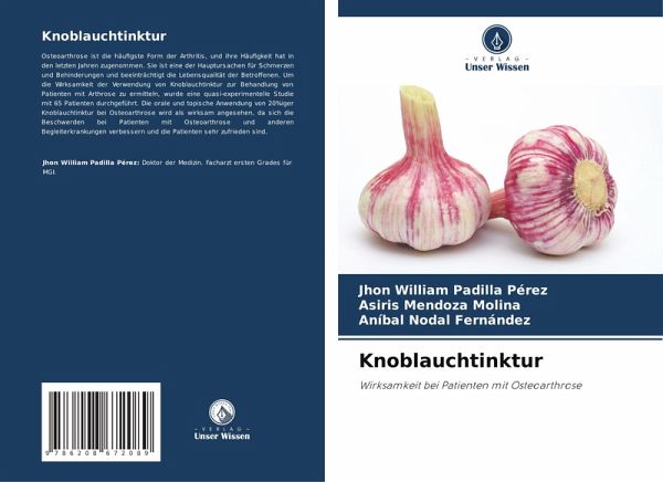 Osteoarthrose ist die häufigste Form der Arthritis, und ihre Häufigkeit hat in den letzten Jahren zugenommen. Sie ist eine der Hauptursachen für Schmerzen und Behinderungen und beeinträchtigt die Lebensqualität der Betroffenen. Um die Wirksamkeit der Verwendung von Knoblauchtinktur zur Behandlung von Patienten mit Arthrose zu ermitteln, wurde eine quasi-experimentelle Studie mit 65 Patienten durchgeführt. Die orale und topische Anwendung von 20%iger Knoblauchtinktur bei Osteoarthrose wird als wirksam angesehen, da sich die Beschwerden bei Patienten mit Osteoarthrose und anderen Begleiterkrankungen verbessern und die Patienten sehr zufrieden sind.