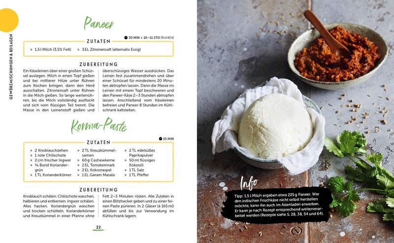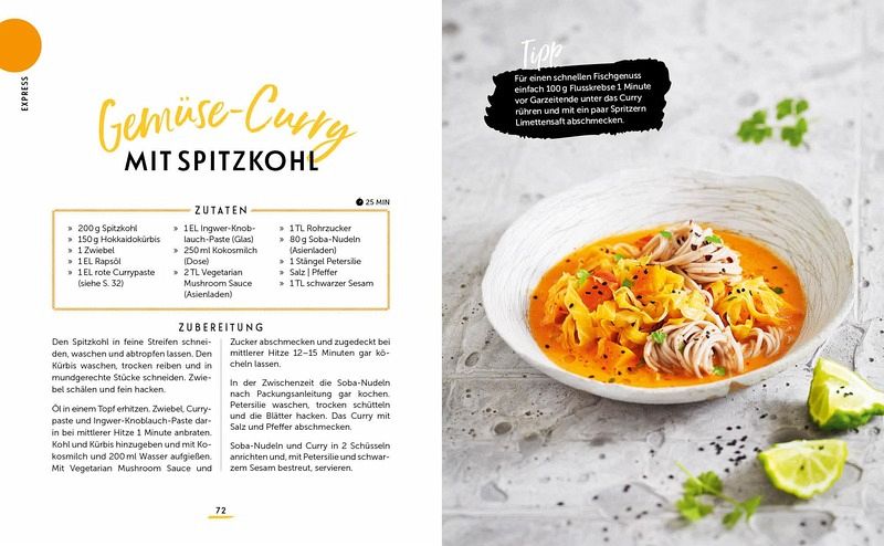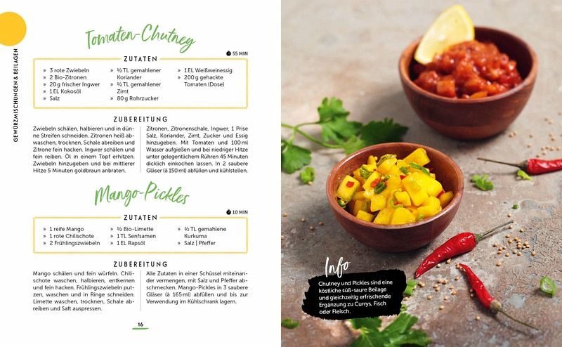 70 himmlische Curry-Rezepte von einfach bis exotisch: Linsen-Kokos-Curry, Chana Masala, Express Butter Chicken, Rotes Garnelen-Curry, Paneer KormaGrundlagenwissen in Form von Rezepten für Beilagen, Gewürzmischungen und DipsPraktische Unterteilung der Kapitel in Klassiker, Express-Currys und Raffinierte CurrysCurrys mit WOW-Effekt: Salsicca-Tomaten-Curry, Aprikosen-Curry-Suppe, Fisch-Curry mit Jakobsmuscheln, Erdnuss-Kokos-Curry mit Pfeffer-Ente ...