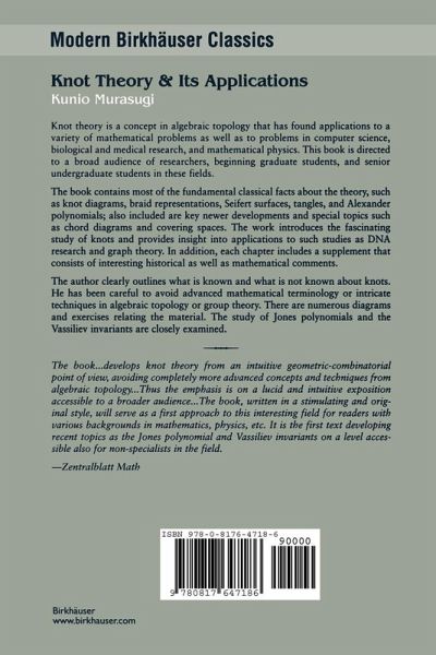 "The book ...develops knot theory from an intuitive geometric-combinatorial point of view, avoiding completely more advanced concepts and techniques from algebraic topology.... intended for readers without a considerable background in mathematics...particular attention is given to connections and applications to other natural sciences. Thus the emphasis is on a lucid and intuitive exposition accessible to a broader audience... The book, written in a stimulating and original style, will serve as a first approach to this interesting field for readers with various backgrounds in mathematics, physics, etc. It is the first text developing recent topics as the Jones polynomial and Vassiliev invariants on a level accessible also for non-specialists in the field." -- Zentralblatt Math