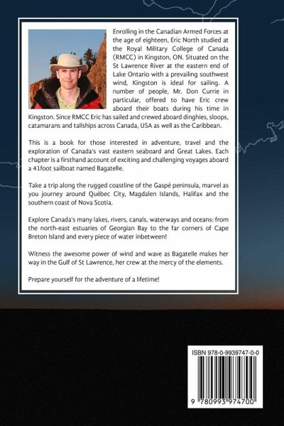 This award-winning book is for those interested in adventure, travel and the exploration of Canada's vast eastern seaboard and Great Lakes. Each chapter is a first-hand account of exciting and challenging voyages aboard a 41-foot sailboat named Bagatelle. Photos, trip summary tables and beautifully hand-drawn charts are available throughout the book. Take a trip along the rugged coastline of the Gaspé peninsula, marvel as you journey around Québec City, Magdalen Islands, Halifax and the southern coast of Nova Scotia. Witness the awesome power of wind and wave as Bagatelle makes her way in the Gulf of St Lawrence, her crew at the mercy of the elements. Prepare yourself for the adventure of a lifetime!