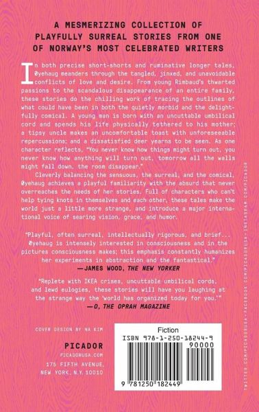 A mesmerizing collection of playfully surreal stories from one of Norway's most celebrated writers First published in Norway in 2004, Knots is Gunnhild Øyehaug's radical collection of short stories that range from the surreal to the oddly mundane, and prod the discomforts of mental, sexual, and familial bonds. In both precise short-shorts and ruminative longer tales, Øyehaug meanders through the tangled, jinxed, and unavoidable conflicts of love and desire. From young Rimbaud's thwarted passions to the scandalous disappearance of an entire family, these stories do the chilling work of tracing the outlines of what could have been in both the quietly morbid and the delightfully comical. A young man is born with an uncuttable umbilical cord and spends his life physically tethered to his mother; a tipsy uncle makes an uncomfortable toast with unforeseeable repercussions; and a dissatisfied deer yearns to be seen. As one character reflects, "You never know how things might turn out, you never know how anything will turn out, tomorrow the walls might fall down, the room disappear." Cleverly balancing the sensuous, the surreal, and the comical, Øyehaug achieves a playful familiarity with the absurd that never overreaches the needs of her stories. Full of characters who can't help tying knots in themselves and each other, these tales make the world just a little more strange, and introduce a major international voice of searing vision, grace, and humor.