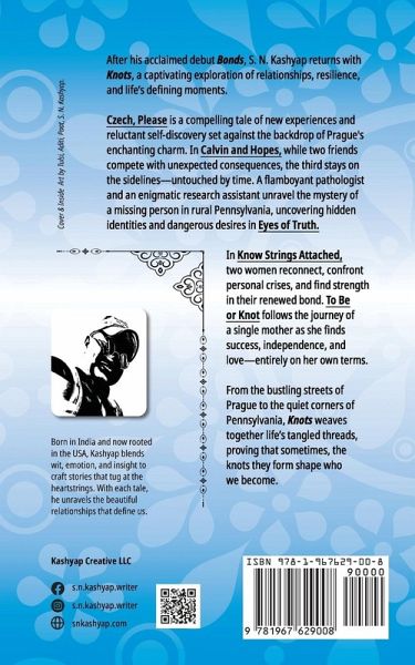 After his acclaimed debut Bonds, S. N. Kashyap returns with Knots, a literary short story collection that explores resilience, identity, and the quiet moments that transform lives. Set across Prague's cobblestone streets, the fields of rural Pennsylvania, and the vibrant cities of India, these interconnected stories trace the invisible threads that tie us to one another - and to ourselves. Czech, Please is a compelling tale of new experiences and reluctant self-discovery set against the backdrop of Prague's enchanting charm. In Calvin and Hopes, while two friends compete with unexpected consequences, the third stays on the sidelines--untouched by time. A flamboyant pathologist and an enigmatic research assistant unravel the mystery of a missing person in rural Pennsylvania, uncovering hidden identities and dangerous desires in Eyes of Truth. In Know Strings Attached, two women reconnect, confront personal crises, and find strength in their renewed bond. To Be or Knot follows the journey of a single mother as she finds success, independence, and love--entirely on her own terms. In this emotionally rich, character-driven work of fiction, S. N. Kashyap captures the profound impact of small choices and unexpected encounters. Readers who enjoy multicultural fiction, contemporary fiction about belonging, and thoughtful stories of self-discovery will find much to savor here. Perfect for book clubs and lovers of literary fiction, Knots offers a journey across continents and cultures, revealing how even the most ordinary moments can spark extraordinary change. Discover the paths we walk, the crossroads we face, and the knots that quietly shape our lives!