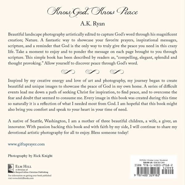 Beautiful landscape photography artistically edited to capture God?s word through his magnificent creation; Nature. A fantastic way to showcase your favorite prayers, inspirational messages and scripture. Ponder the message on each page and allow yourself to discover peace through God?s word.