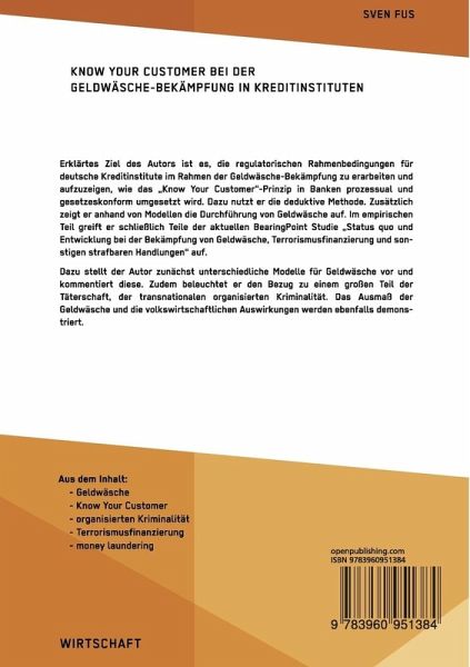 Erklärtes Ziel des Autors ist es, die regulatorischen Rahmenbedingungen für deutsche Kreditinstitute im Rahmen der Geldwäsche-Bekämpfung zu erarbeiten und aufzuzeigen, wie das "Know Your Customer"-Prinzip in Banken prozessual und gesetzeskonform umgesetzt wird. Dazu nutzt er die deduktive Methode. Zusätzlich zeigt er anhand von Modellen die Durchführung von Geldwäsche auf. Im empirischen Teil greift er schließlichTeile der aktuellen BearingPoint Studie "Status quo und Entwicklung bei der Bekämpfung von Geldwäsche, Terrorismusfinanzierung und sonstigen strafbaren Handlungen" auf.Dazu stellt der Autor zunächst unterschiedliche Modelle für Geldwäsche vor und kommentiert diese. Zudem beleuchtet er den Bezug zu einem großen Teil der Täterschaft, der transnationalen organisierten Kriminalität. Das Ausmaß der Geldwäsche und die volkswirtschaftlichen Auswirkungen werden ebenfalls demonstriert.Anschließend widmet sich die Arbeit dem rechtlichen Kontext der Geldwäsche, in Deutschland im Rahmen des § 261 des Strafgesetzbuchs. Darauf aufbauend wird das "Know Your Customer"-Prinzip erläutert und die Umsetzung in deutschen Banken aufgezeigt sowie die spezifischen Produkt-, Länder-, Branchen- und Kundenrisiken untersucht. Außerdem wird der Prozess bei der Aufnahme einer neuen Geschäftsbeziehung wie auch die laufende Überprüfung von bestehenden Geschäftspartnern veranschaulicht. Darüber hinaus wird ein Ausblick auf die zukünftigen regulatorischen Änderungen, wie die vierte EU-Geldwäsche-Richtlinie und der EU-Aktionsplan für ein intensiveres Vorgehen gegen Terrorismusfinanzierung in Bezug auf KYC, gegeben.Aus dem Inhalt:- Geldwäsche;- Know Your Customer;- organisierten Kriminalität;- Terrorismusfinanzierung;- money laundering