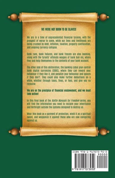STAND IN YOUR GOD-GIVEN AUTHORITY! A financial concentration camp is now under construction, its purpose to extort and enslave you, but we may overcome it with the full armour of God and the true weapons of Law. Brothers and Sisters, this book is your battle manual! In July 2025, Donald Trump signed the so-called GENIUS Act by which a federal agency can "seize, freeze, burn, or prevent the transfer of payment" of anyone who doesn't obey Government decrees or who questions the latest propaganda. Similar moves are afoot in other nations. So ask yourself, do you know your financial Rights? Do you know your true standing as a Living Man or Living Woman? And have you shielded your financial future? In this closing installment of his three-volume Battle Manuals for Freedom collection, Abdiel LeRoy destroys the lies and schemes of the banking cabal and the Father of Lies they worship, and he demolishes the four great evils they have perpetrated against us: Taxation, Inflation, Confiscation, and Debt. All are impositions of men, all unlawful, all ungodly, all crushing our lives and livelihoods. Your tax compliance, he points out, has been funding genocide, your debt payments are rewarding banks who never lent you anything in the first place, and the empty digits in your bank account can be seized at a moment's notice. It is time to stop funding our demise and to transact in ways that tyrants can not monitor, surveil, or control, but this path to liberation should not be overly complicated or onerous. Thus, with long experience as a financial journalist writing for lay audiences, LeRoy cuts through the fog and obfuscation. A second Exodus has begun, and this book is leading the way. CHAPTER HEADINGS Introduction 1. Taxation Is Dead to Us The Status of Man/ Government Racketeering/ Pharisees and Religion/ Taxation Crucified/ Common Law and Magna Carta/ Legislation Is Dead to Us/ Court Precedent 2. A Tax Detox Tax Rebellion/ Revocation of Consent in the States United/ Fines Are Taxes Too 3. More on Council Tax in Britain Veronica Chapman/ Mick Butler/ Leighton v Bristow & Sutor 4. Weaponized Banking and Inflation Dodgy Dollars/ The Federal Reserve/ Fractional Reserve Banking/ Engineered Collapse? 5. Silver Linings Silver/ Goldbacks/ UPMA/ Crypto 6. Debt Solutions/ Mortgages and 'Promissory Notes'/ Utility Bills/ National Debt 7. Confiscation Trusts/ Collectors/ Police/ Forced Entry?/ Protective Court Precedents 8. Any Top-Down Fixes? Conclusion