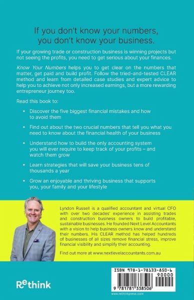 If you don't know your numbers, you don't know your business. If your growing trade or construction business is winning projects but not seeing the profits, you need to get serious about your finances. Know Your Numbers helps you to get clear on the numbers that matter, get paid and build profit. Follow the tried-and-tested CLEAR method and learn from detailed case studies and expert advice to help you to achieve not only increased earnings, but a more rewarding entrepreneur journey too. Read this book to: ¿ Discover the five biggest financial mistakes and how to avoid them ¿ Find out about the two crucial numbers that tell you what you need to know about the financial health of your business ¿ Understand how to build the only accounting system you will ever require to keep track of your profits - and watch them grow ¿ Learn strategies that will save your business tens of thousands a year ¿ Grow an enjoyable and thriving business that supports you, your family and your lifestyle