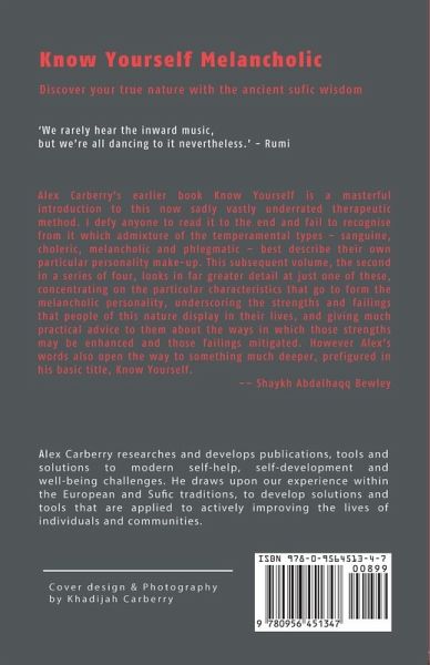 Know YourselfAlex Carberry's earlier book Know Yourself is a masterful introduction to this now sadly vastly underrated therapeutic method. I defy anyone to read it to the end and fail to recognise from it which admixture of the temperamental types - sanguine, choleric, melancholic and phlegmatic - best describe their own particular personality make-up. This subsequent volume, the second in a series of four, looks in far greater detail at just one of these, concentrating on the particular characteristics that go to form the melancholic personality, underscoring the strengths and failings that people of this nature display in their lives, and giving much practical advice to them about the ways in which those strengths may be enhanced and those failings mitigated. However Alex's words also open the way to something much deeper, prefigured in his basic title, Know Yourself.