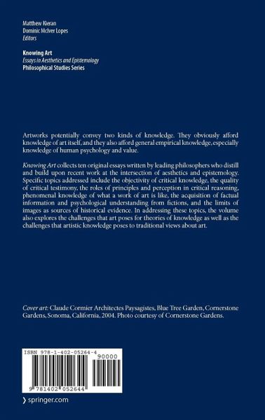 "Knowing Art" collects ten original essays written by leading philosophers who distill and build upon recent work at the intersection of aesthetics and epistemology. Specific topics addressed include the objectivity of critical knowledge, the quality of critical testimony, the roles of principles and perception in critical reasoning, phenomenal knowledge of what a work of art is like, the acquisition of factual information and psychological understanding from fictions, and the limits of images as sources of historical evidence. In addressing these topics, the volume also explores the challenges that art poses for theories of knowledge as well as the challenges that artistic knowledge poses to traditional views about art.