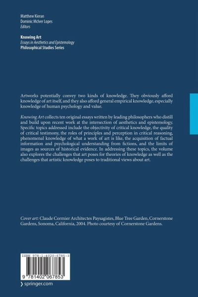 "Knowing Art" collects ten original essays written by leading philosophers who distill and build upon recent work at the intersection of aesthetics and epistemology. Specific topics addressed include the objectivity of critical knowledge, the quality of critical testimony, the roles of principles and perception in critical reasoning, phenomenal knowledge of what a work of art is like, the acquisition of factual information and psychological understanding from fictions, and the limits of images as sources of historical evidence. In addressing these topics, the volume also explores the challenges that art poses for theories of knowledge as well as the challenges that artistic knowledge poses to traditional views about art.