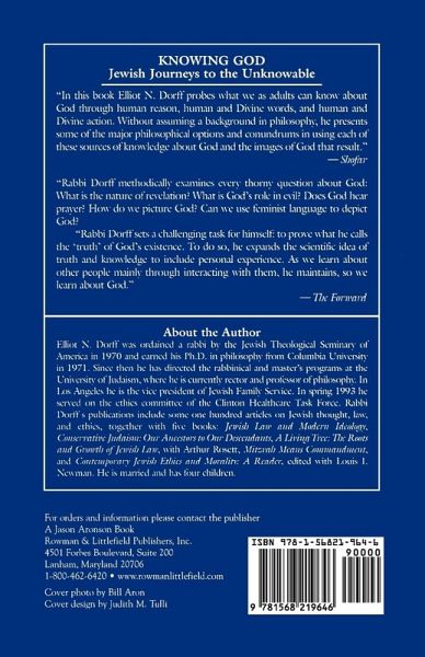 Contemporary Jews often find meaning in Judaism's family and communal orientation, its beautiful rituals, its enriching culture, its sense of ethnic rootedness, and its moral values. For the classical Jewish tradition, however, all of these features of Judaism depend on a belief in God. Since many modern Jews do not know what to make of that belief, it is often ignored. They may be inspired by Judaism's high regard for education and its passion for justice, but their belief in God rests on childhood images of the Almighty. They are often embarrassed and uneasy, for they sense that their attachment to Judaism may be based upon intellectual quicksand. Motivated by just such feelings, Rabbi Elliot Dorff probes what we as adults can know about God through human reason, human and Divine words, and human and Divine action. Without assuming a background in philosophy, he skillfully takes us through some of the major philosophical options and conundrums in using each of these sources of knowledge about God and the images of God that result. With remarkable clarity and inspiring honesty, Rabbi Dorff's exploration results in a vibrant Jewish faith, one that takes due regard for both the emotional and intellectual sides of our being. Dorff's own personal quest, artfully woven throughout this spiritually uplifting volume, aids the reader to make his or her own Judaism emotionally satisfying and intellectually sound. The result is a Judaism that can be for the modern reader what it is for the author: the product of a love of God 'with all one's heart, with all one's soul, and with all one's might.'