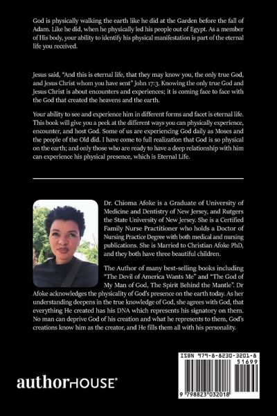 God is physically walking the earth like he did at the Garden before the fall of Adam. Like he did, when he physically led his people out of Egypt. As a member of His body, your ability to identify his physical manifestation is part of the eternal life you received. Jesus said, "And this is eternal life, that they may know you, the only true God, and Jesus Christ whom you have sent" John 17:3. Knowing the only true God and Jesus Christ is about encounters and experiences; it is coming face to face with the God that created the heavens and the earth. Your ability to see and experience him in different forms and facet is eternal life. This book will give you a peek at the different ways you can physically experience, encounter, and host God. Some of us are experiencing God daily as Moses and the people of the Old did. I have come to full realization that God is so physical on the earth; and only those who are ready to have a deep relationship with him can experience his physical presence, which is Eternal Life.