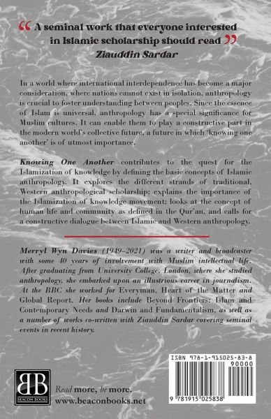 In a world where international interdependence has become a major consideration, where nations cannot exist in isolation, anthropology is crucial to foster understanding between peoples. Since the essence of Islam is universal, anthropology has a special significance for Muslim cultures. It can enable them to play a constructive part in the modern world's collective future, a future in which 'knowing one another' is of utmost importance. Knowing One Another contributes to the quest for the Islamization of knowledge by defining the basic concepts of Islamic anthropology. It explores the different strands of traditional, Western anthropological scholarship; explains the importance of the Islamization of knowledge movement; looks at the concept of human life and community as defined in the Qur'an, and calls for a constructive dialogue between Islamic and Western anthropology.