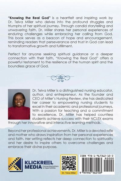 "Knowing the Real God" is a heartfelt and inspiring work by Dr. Telva Miller who delves into the profound struggles and triumphs of her spiritual journey. Through candid storytelling and unwavering faith, Dr. Miller shares her personal experiences of enduring challenges while embracing her calling from God. This book serves as a beacon of hope and encouragement, reminding readers that perseverance and trust in God can lead to transformative growth and fulfillment. Perfect for anyone seeking spiritual guidance or a deeper connection with their faith, "Knowing the Real God" offers a powerful testament to the resilience of the human spirit and the boundless grace of God.