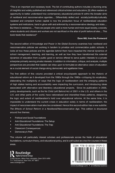 The second edition of Knowledge and Power in the Global Economy examines how neoliberal and neoconservative policies are working in tandem to privatize and commercialize public schools. It looks at how these policies and the agendas behind them have impacted the internal dynamics of school management, teaching, and learning, as well as how they have transformed the external dynamics of education from a public good or service offered to serve public interests to a private enterprise primarily serving private interests. In addition to information, critique, and analysis, multiple perspectives are provided that readers can draw upon to formulate an alternative vision of education as a crucial element of social change along democratic and egalitarian lines. The first edition of this volume provided a critical encyclopedic approach to the rhetoric of educational reform as it developed from the 1980s through the 1990s?critiquing its vocabulary, elaborating the multiplicity of ways that the logic of neoliberalism and the emerging patterns of high stakes testing and accountability were impacting the curriculum, and introducing ideas associated with alternative and liberatory educational projects. Since its publication in 2000, policy developments, such as the No Child Left Behind Act of 2001 in the U.S. and others in the U.K. and other parts of the world, have nationalized and intensified these patterns, deepening the logic and extent of neoliberalism's hold over educational reforms. At the same time, it is impossible to understand the current crises in education solely in terms of neoliberalism; the impact of neoconservatism must also be considered. Hence this second edition has a new subtitle: The Effects of School Reform in a Neoliberal/ Neoconservative Age. This edition is structured around five themes: *Political and Social Foundations; *Anti-Educational Foundations: The Set-Up; *Anti-Educational Foundations: The Trap; *Classroom Consequences; and *Democracy's Path. This volume will particularly interest scholars and professionals across the fields of educational foundations, curriculum theory, and educational policy, and is well suited as a text for courses in these areas.